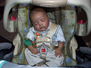 So here we are less than two months after his birth going to court to finalize the adoption. We were there (obviously) as were all of the grandparents (3 grandmothers, 1 grandfather). I bought a new outfit for Little Man, we all dressed up, and we travelled about 1 hour north to the county where our lawyer practices.