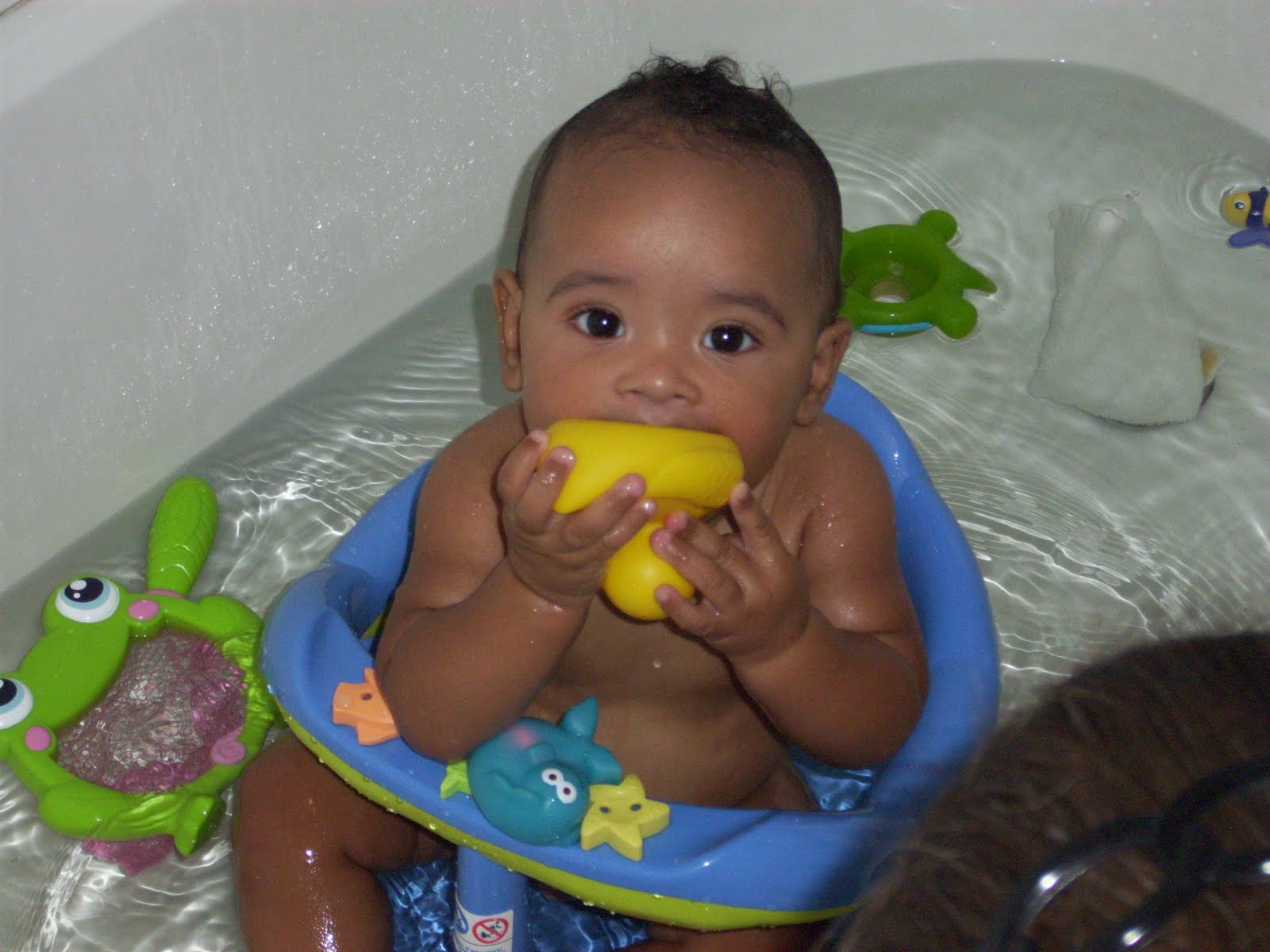He still loves bath time – even more so now that he gets to take a “big” bath!