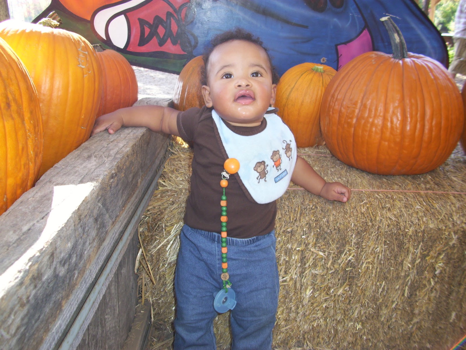 We have been enjoying Little Man’s first fall experience. Today he was fascinated by the chill in the air and the wind in his face. He loves when the furnace kicks on (it does make a pretty fun little noise!). We went to a pumpkin patch/apple orchard a few weeks ago. However, it was 80 degrees out on the day, and we opted not to ride the hay wagon (with no shade) all the way out to the pumpkin patch (with no shade) and wait while twenty dozen kids decided which pumpkin they just had to have (with no shade).