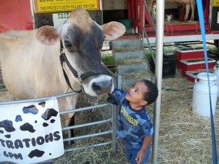 Litte Man ate two corn dogs, some fried Wisconsin cheddar, and some fried veggies. I had a few bites of corn dog, cheddar and veggies, as well as a lemon shakeup. Keith added a chicken-on-a-pita to his menu. We walked a little over 3 miles, saw lots of tractors, petted lots of goats and saw some baby cows.